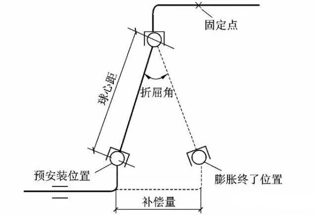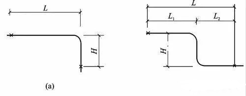 自然補(bǔ)償器是利用保溫管道自然轉(zhuǎn)彎構(gòu)成的幾何形狀所具有的彈性來(lái)補(bǔ)償管道的熱膨脹,使保溫管道應(yīng)力得以減小。常見的自然補(bǔ)償器有L型(a)、Z型自然補(bǔ)償器(b),如圖一所示。
