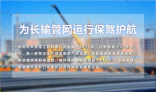 河北元豐管道工程有限公司是一家集鋼套鋼蒸汽保溫管、聚氨酯預(yù)制直埋保溫管、噴涂纏繞預(yù)制保溫管、鍍鋅鐵皮架空保溫管、PERT-Ⅱ型保溫管、保溫管件及補(bǔ)口安裝的綜合研發(fā)型制造服務(wù)企業(yè)。